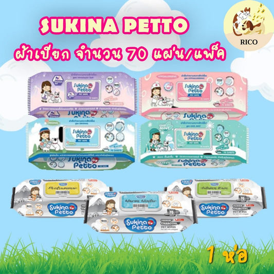 Sukina Petto Pet Wipes ผ้าเปียกเช็ดทำความสะอาดสัตว์ 70 แผ่น